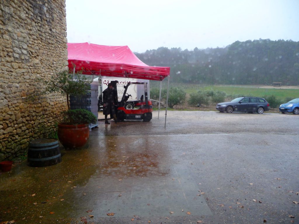 It was a three day job, with Manu bringing his efficient bottling truck to the domaine. The wine is pumped in, and empty bottles are added to the conveyor belt at one end. The bottles are washed, then filled with gas that is immediately replaced with wine (to avoid oxygen in the bottles). Add a cork and then they trundle along another belt to give the cork time to expand before being grabbed by us and placed 500 to a pallox (metal crate) on their sides.